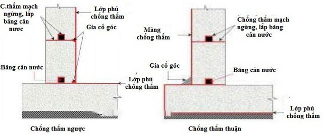 Vách tầng hầm thì có thể chống thấm theo 2 cách: vách trong và vách ngoài tầng hầm.
